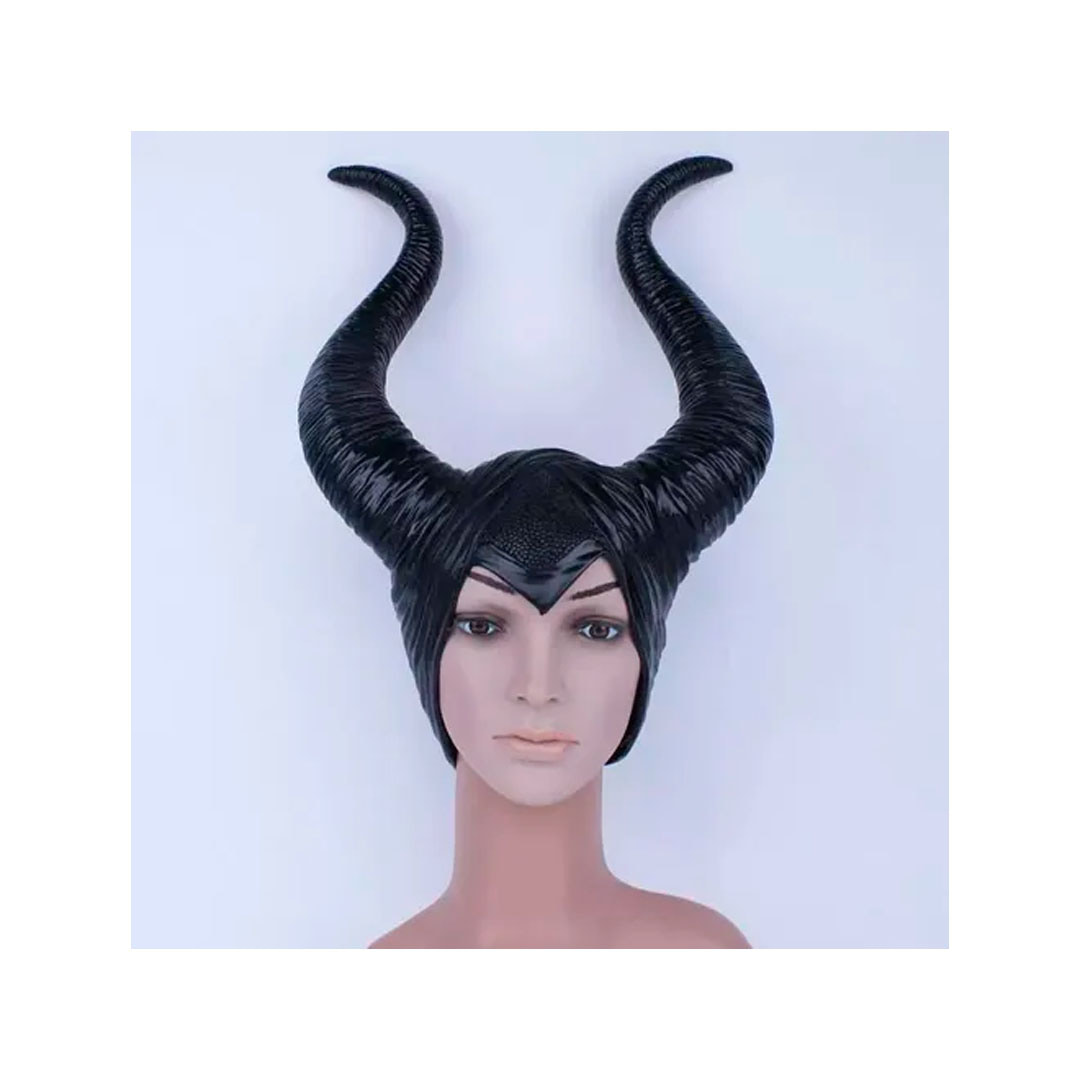 Accesorio de cuernos negros estilo bruja malvada, ideal para completar disfraces oscuros y darle un toque impactante a tu look de Halloween.