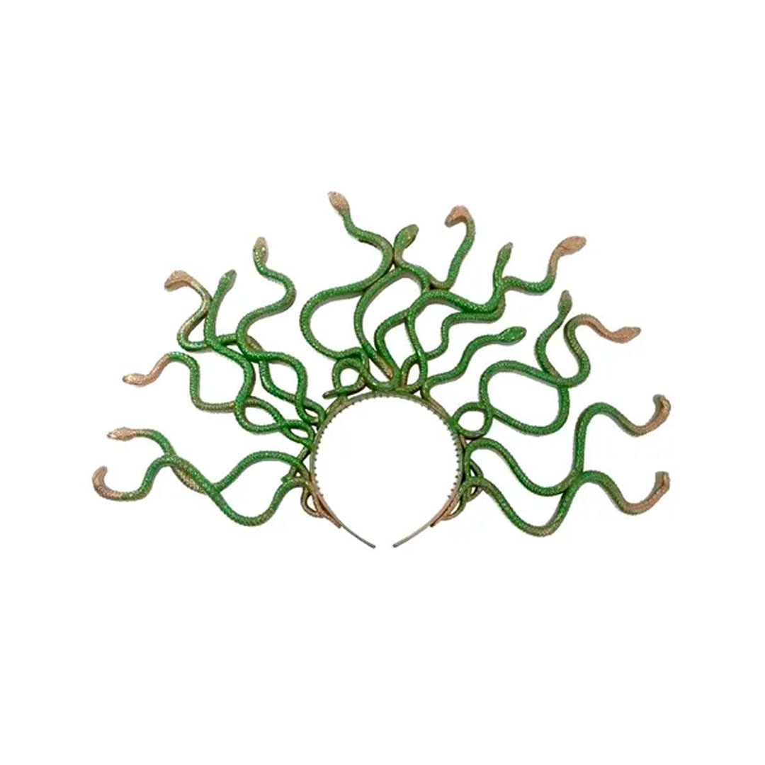 Vincha de Halloween con diseño de serpientes en relieve que imitan la cabellera de Medusa. Ideal para completar disfraces originales y darle un toque mitológico y aterrador a tu look.